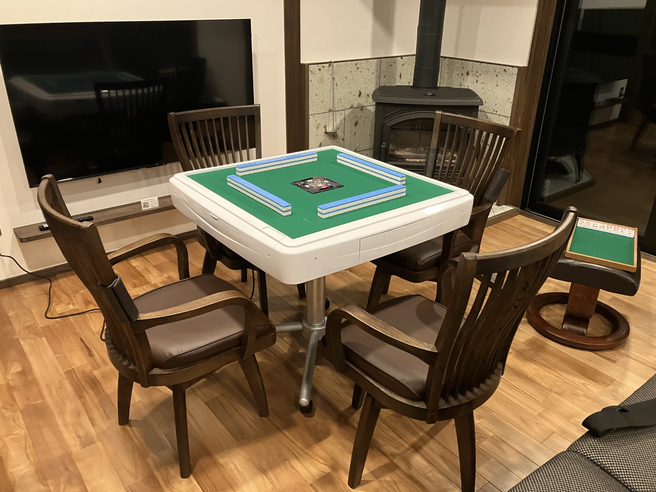 麻雀はリビングのテレビの前のスペースでお楽しみください。ソファー等を移動し、椅子はLDKの回転椅子をご利用ください。